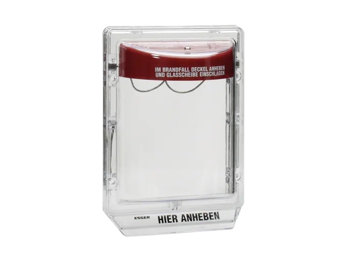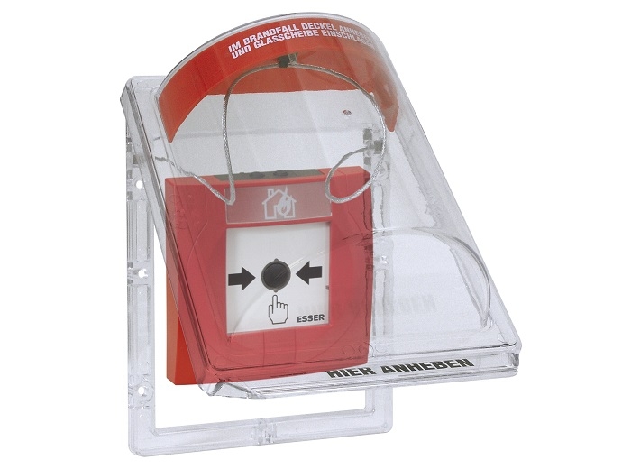 Carcasa de protectie pentru butoanele de incendiu de format mare (80490x), inscriptionare in limba germana, formata dintr-un cadru si un capac din plastic policarbonat transparent, usor de instalat, clasa de protectie IP 44, dimensiuni 180 x 260 x 100 mm, masa cca. 590g, temperatura mediului -40 °C - 49 °C