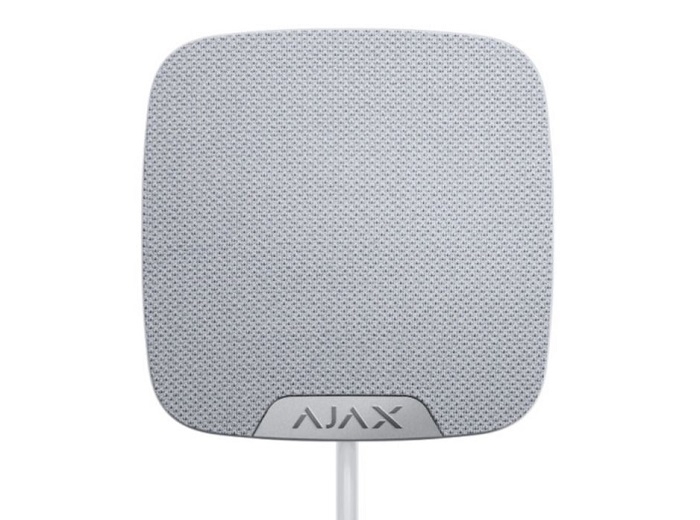 Sirena de interior Fibra (cablata), culoare alba, cu conectare LED extern, notificari acustice (buzzer incorporat), volum 81-105 dB la distanta de 1 m, durata alarma reglabila de la 3 la 180 secunde, frecventa sunet sirena 3.4 ± 0.5 kHz, conectare LED aditional 3V (functioneaza in paralel cu LED-ul incorporat, replicand indicatiile acestuia), alarma antisabotaj, conectare bus - cablu 4 fire, lungime bus line max. 2000m, alimentare 24 V⎓, max. 50 µA, IP50, dimensiuni 90.5 x 90.5 x 33 mm, greutate 84g