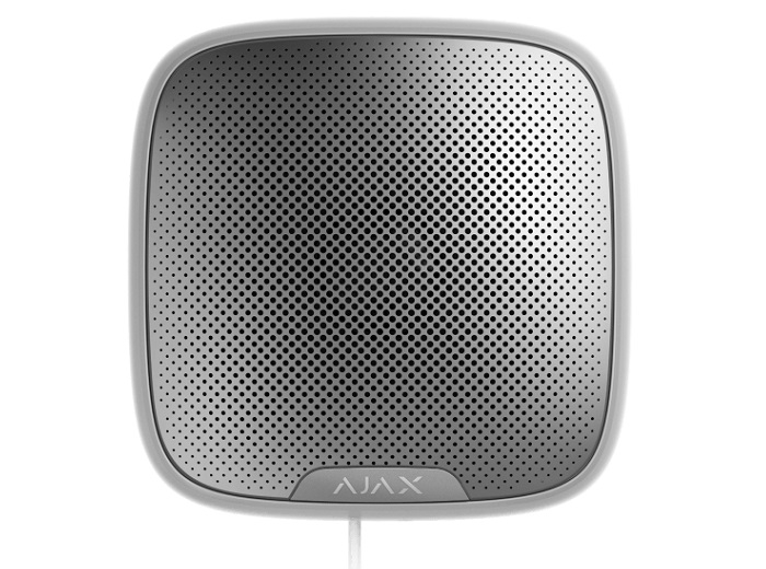 Sirena de exterior Fibra (cablata), culoare alba, notificari acustice (buzzer incorporat) si vizuale (LED), volum 81-113 dB la distanta de 1 m, durata alarma reglabila de la 3 la 180 secunde, frecventa sunet sirena 3.5 ± 0.5 kHz, alarma antisabotaj, conectare bus - cablu 4 fire, lungime bus line max. 2000m, alimentare 24 V⎓, max. 100 µA, IP54, dimensiuni 198.5 x 198.5 x 58 mm