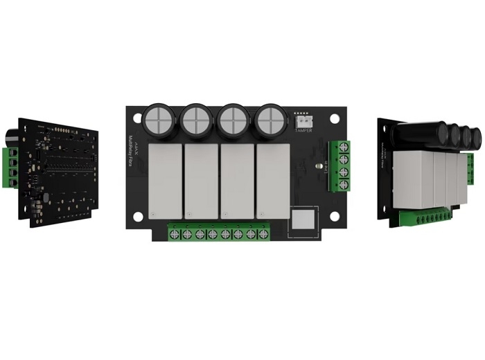 Releu cu 4 canale si contacte libere de potential pentru a controla sursa de alimentare de la distanta, moduri operare bistable si pulse (timp operare pentru modul pulse de la 10 sec. la 2 ore), protectie impotriva supraincalzirii (toate cele 4 relee se dezactiveaza automat cand cel putin unul dintre ele trece de 85 grade C), conformitate cu EN 50131 (Grade 3), alimentare 8.5 30 V⎓, pana la 185 mW, dimensiuni 90 x 55 x 30 mm, greutate 84g