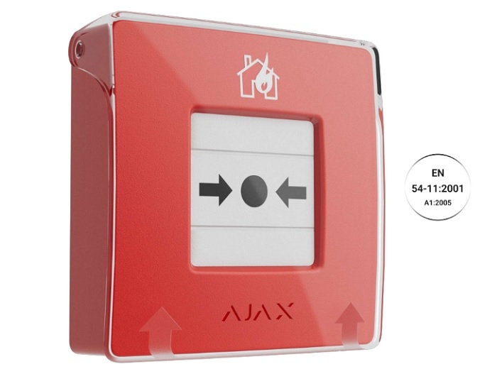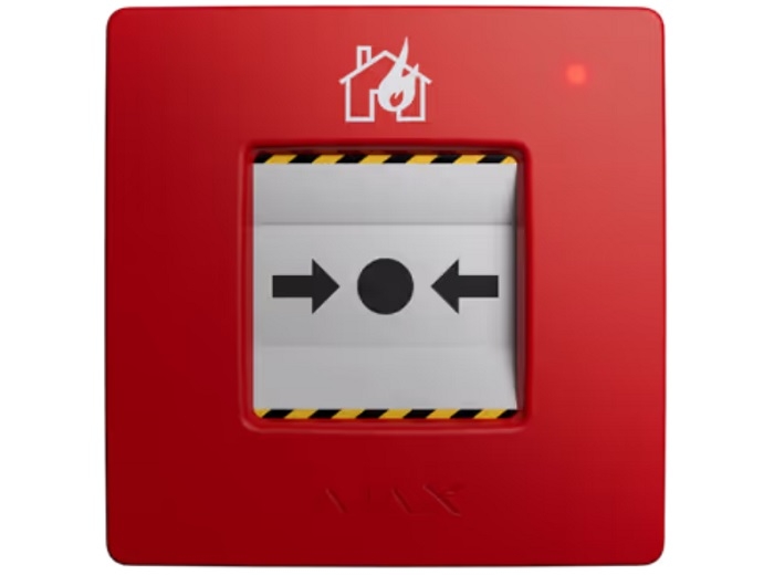 Buton wireless pentru activare manuala la alarma de incendiu, carcasa rosie, in conformitate cu standardul EN 54-11:2001/A1:2005, tehnologie de comunicare Jeweller comunicare pe distanta de max. 1700m in camp deschis, alimentare cu 2 baterii CR123A pre-instalate, max. 7 ani durata de viata baterie, montare pe perete, dimensiuni 102 x 104 x 39 mm, greutate 214g