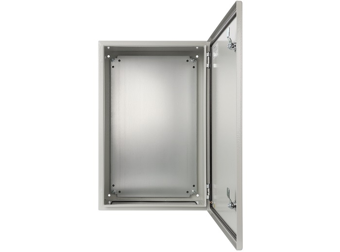 Carcasa metalica ermetica cu placa montaj, protectie IP66, utilizare in exterior, protectie anticoroziune, culoare gri, dimensiuni exterioare W=400, H=600, D=200 (+/-2mm), metal carcasa de grosime 1.2mm, placa montaj de 1.5mm, usa interschimbabila - dreapta sau stanga, temperatura operare -10C ÷ +40°C, umiditate 20% - 90% fara condens