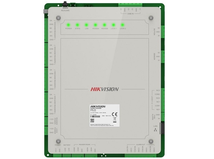 Placa centrala control acces pentru 2 usi, seria Pro, capacitate 100000 utilizatori, 10000 amprente, 100000 carduri, 300000 evenimente, posibilitate conectare 4 cititoare RS-485 (protocol OSDP) si 4 cititoare Wiegand, 1 tamper, 4 intrari si 4 iesiri alarma, accepta protocoalele de criptare AES256, RSA2048 si TLS 1.2, indicatoare luminoase pentru alimentare, comunicare si operare, alimentare 12 VDC
