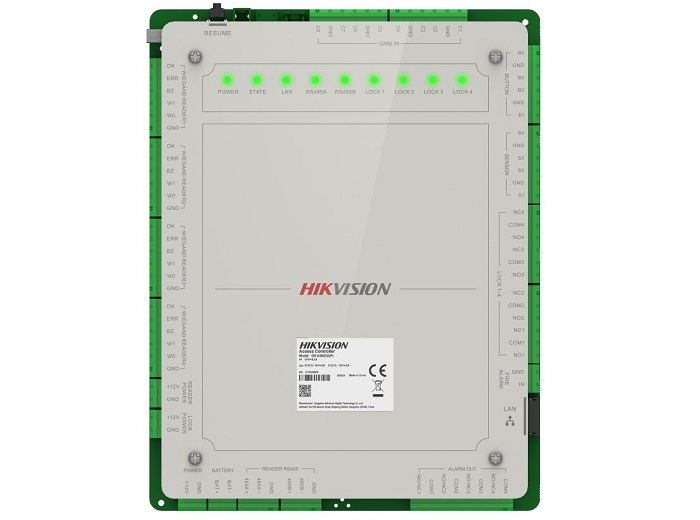 Placa centrala control acces pentru 4 usi, seria Pro, capacitate 100000 utilizatori, 10000 amprente, 100000 carduri, 300000 evenimente, posibilitate conectare 8 cititoare RS-485 (protocol OSDP) si 4 cititoare Wiegand, 1 tamper, 8 intrari si 4 iesiri alarma, accepta protocoalele de criptare AES256, RSA2048 si TLS 1.2, indicatoare luminoase pentru alimentare, comunicare si operare, alimentare 12 VDC