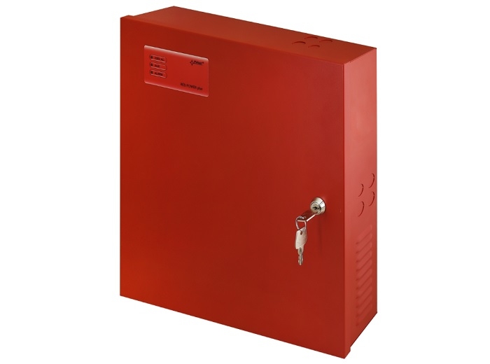 Sursa pentru sisteme de incendiu EN54C, 27.6V/3A, suporta backup acumulator 2 x 7Ah, in conformitate cu standardele EN 54-4 si EN 12101-10, 2 iesiri protejate independent AUX1 si AUX2, protectie impotriva scurt-circuitarii (SCP), supraincarcarii (OLP), supratensiunii (OVP), descarcarii electrice (UVP) si sabotajului - tamper, indicator LED, test baterie automat, proces de incarcare baterie in 2 etape, incarcare baterie accelerata, monitorizare continuitate circuit baterie, tensiune baterie, incarcare si mentenanta baterie, dimensiuni carcasa metalica rosie 335 x 308 x 82 mm