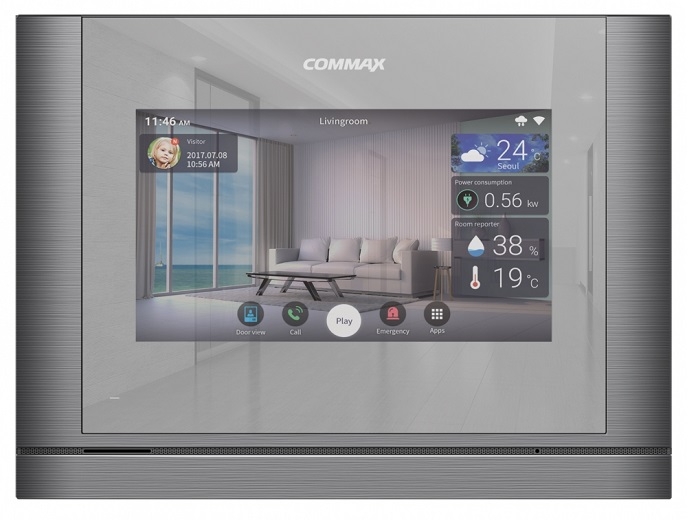 Monitor color touchscreen de 7", wireless, SIP, Zigbee, rezolutie 1024x600, memorie interna 1G DDR/8G, PoE, compatibil CIOT. Pana la 10 apartamente se poate instala fara server, in COMMAX Cloud. Pana la 1000 apartamente trebuie folosit impreuna cu SIP Gateway. Dimensiuni 244x180x18 cu montaj aplicat.